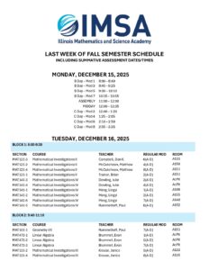 IMSA-F25-Last-Week-Schedule-v7 | Illinois Mathematics and Science Academy